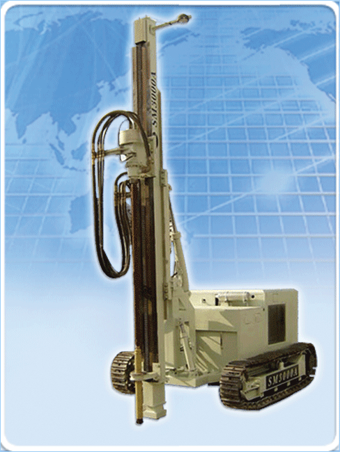 鉆機(jī)采用內(nèi)燃機(jī)(或電動機(jī))液壓油泵動力組供給鉆機(jī)行走、回轉(zhuǎn)、推進(jìn)及提升、油缸擺角定位等,除潛孔沖擊器之外的所有動力;鉆機(jī)鉆孔作業(yè)時只有潛孔沖擊器消耗壓縮空氣。該鉆機(jī)采用潛孔沖擊對心擴(kuò)孔或偏心擴(kuò)孔外套管跟進(jìn)護(hù)壁成孔工藝鉆鑿水電圍堰注漿孔、提壩防滲注漿也、基礎(chǔ)回固注漿孔及錨孔等;該鉆機(jī)也可用于水井、地溫空調(diào)鉆孔作業(yè)及各類石方工程爆破孔作業(yè)。